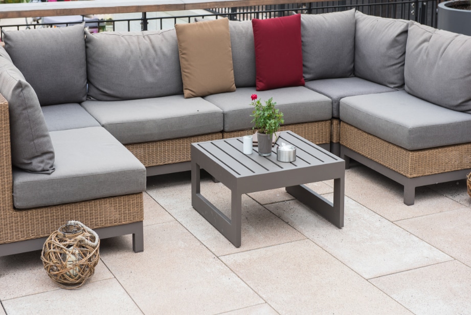 - U-shaped configurations: Ideal for larger patios (12×14 feet minimum) where you want to create an intimate conversation area